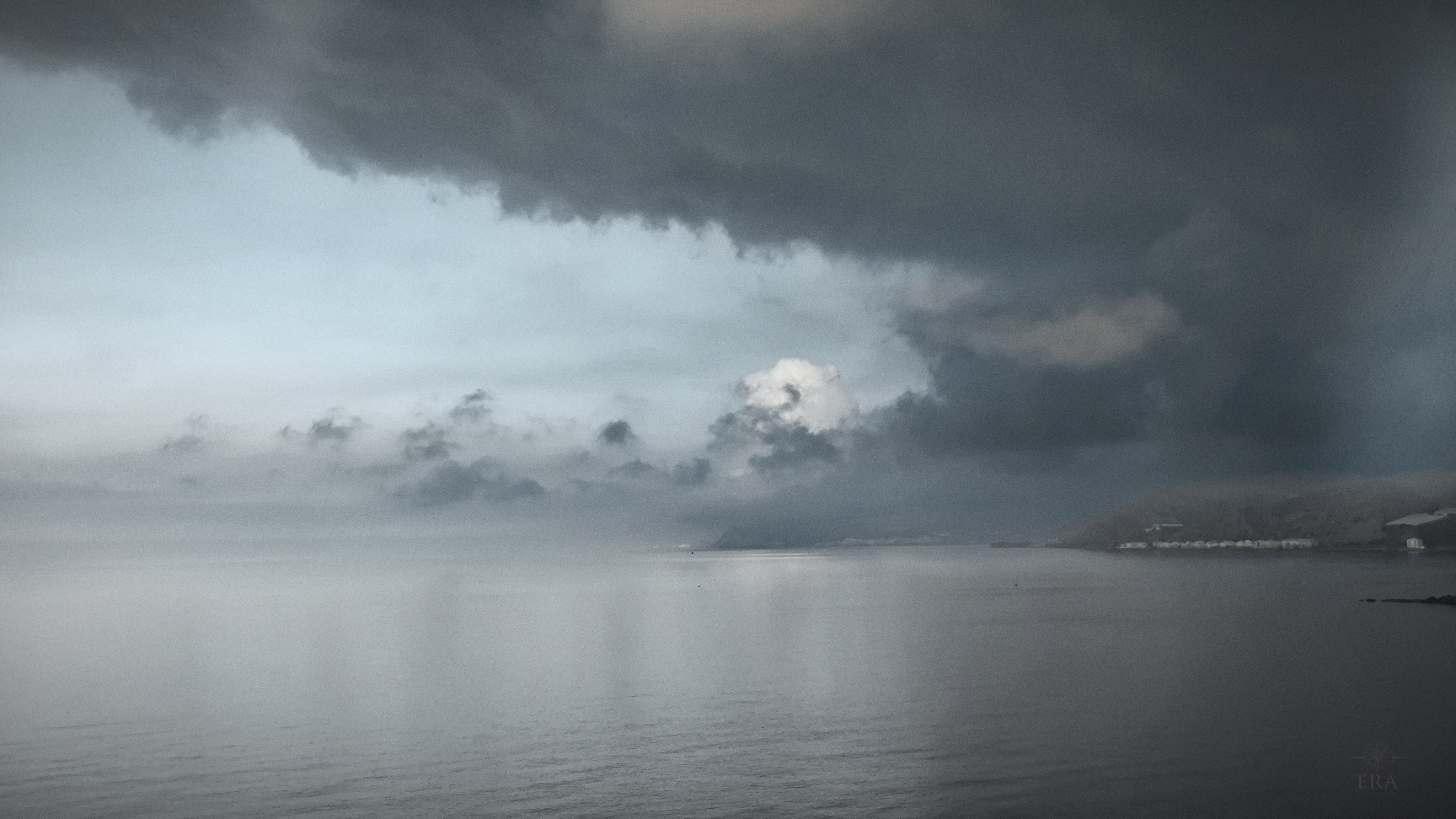 Cuando las nubes bajas no se atreven a entrar en el mar y se quedan flotando en el ambiente, así, como temerosas, como un adolescente ansioso incapaz de zambullirse en el agua fría. Es un momento curioso, donde la naturaleza juega a perderse en su propia timidez.