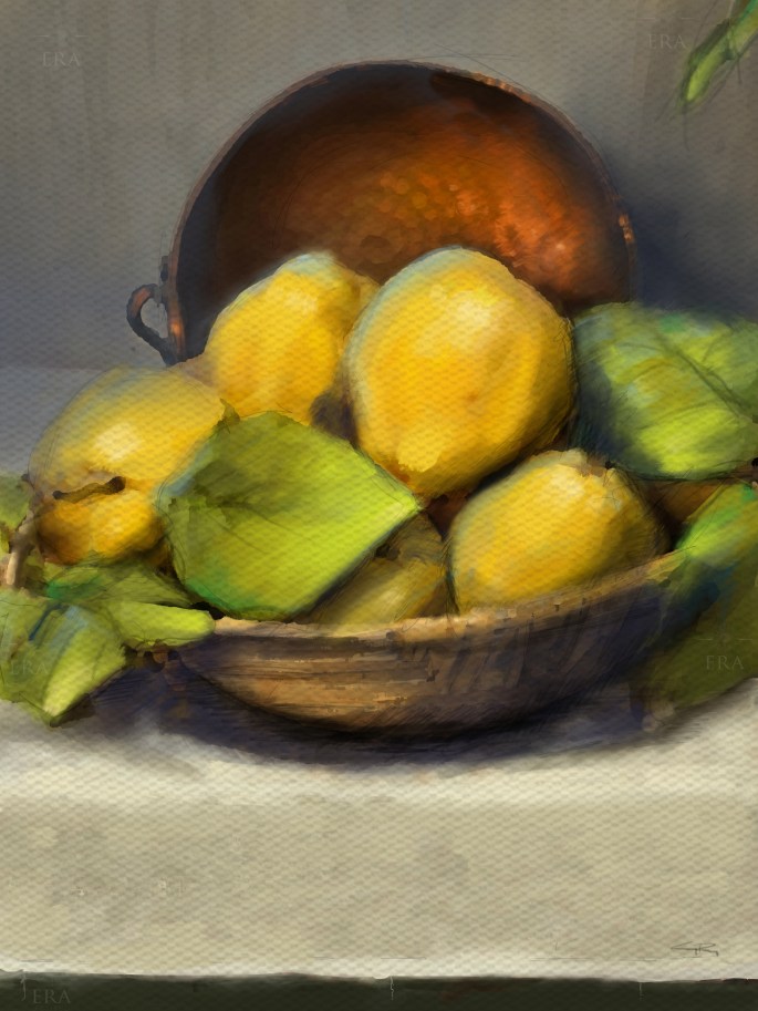 Hoy en día, este dulce manjar, capricho de «diosas», se ha visto relegado a unas meras recetas otoñales. Pero su riqueza cromática con su espectacular color amarillo como elemento dominante sigue motivando a románticos de la pintura, sabios conocedores de su belleza, que ven en él una fuente de inspiración.